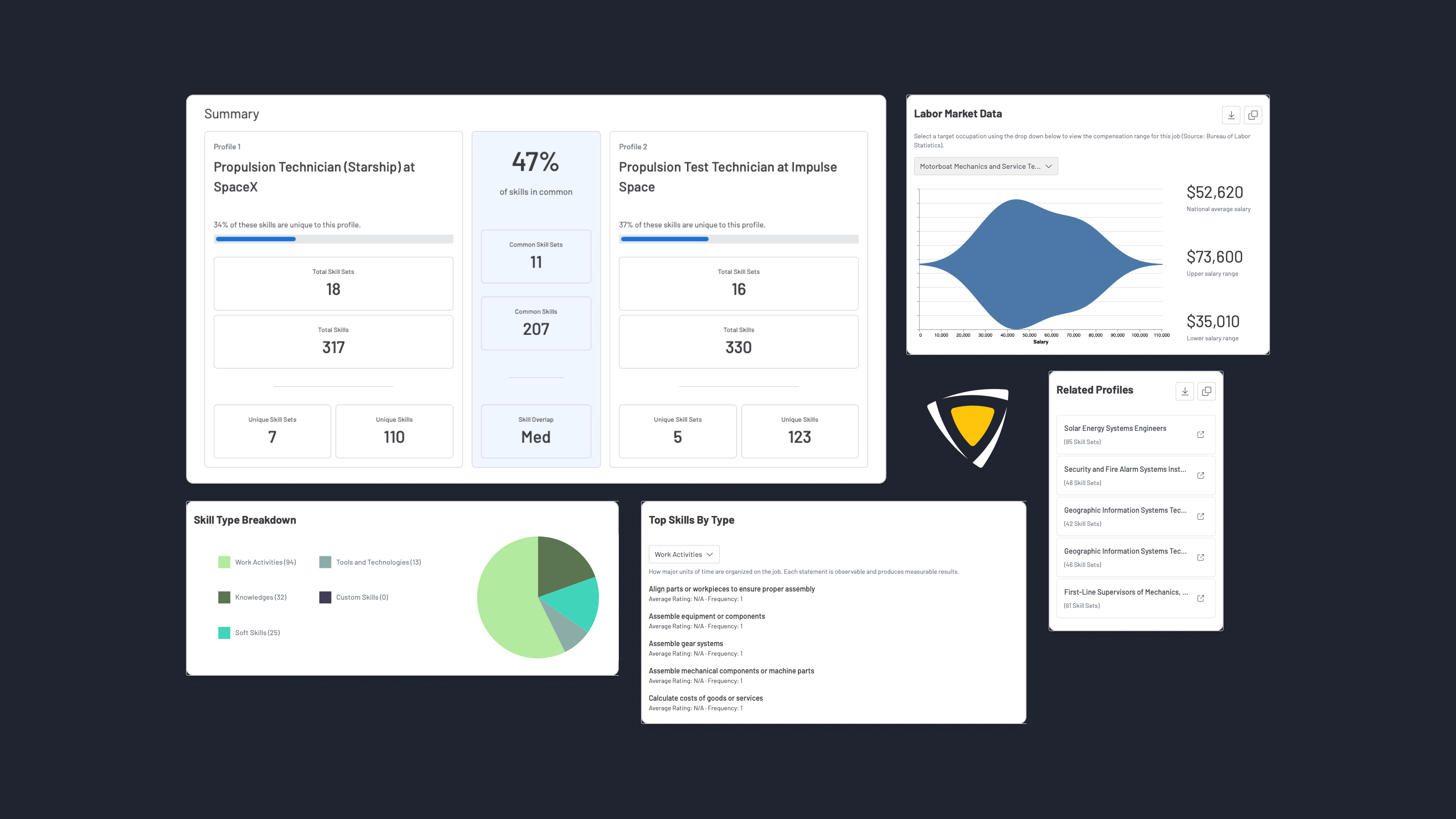 Skills-based workforce analytics and labor market alignment platform for work and learning communities